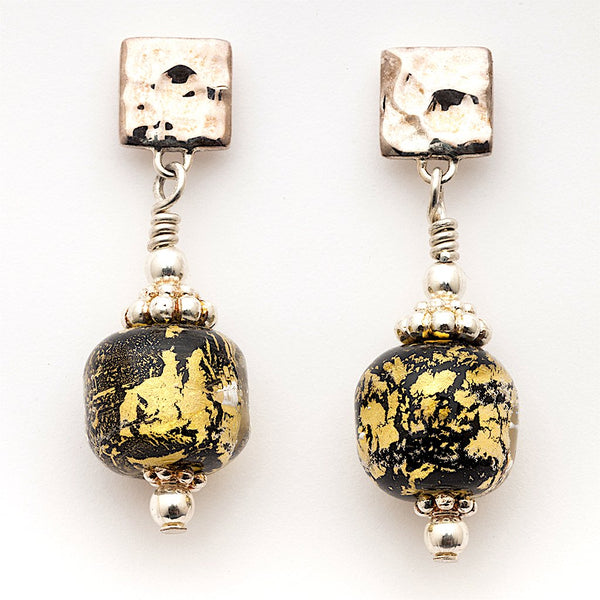 Cipriani Earrings - Gold leaf glass beads delicately adorned with matching hammered silver posts.
