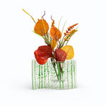 Bamboo - This simple bamboo design makes an artistic statement in any home. The aventurine green colored glass powder is fused into the bamboo design on crystal clear glass. An elegant presentation for a flower bud, or beautiful arrangement. The art glass flower holder is securely fused to hold water for your fresh flowers. Each art glass flower vase is signed by the artist. 5 ½” wide x 4” high x ½” deep.